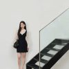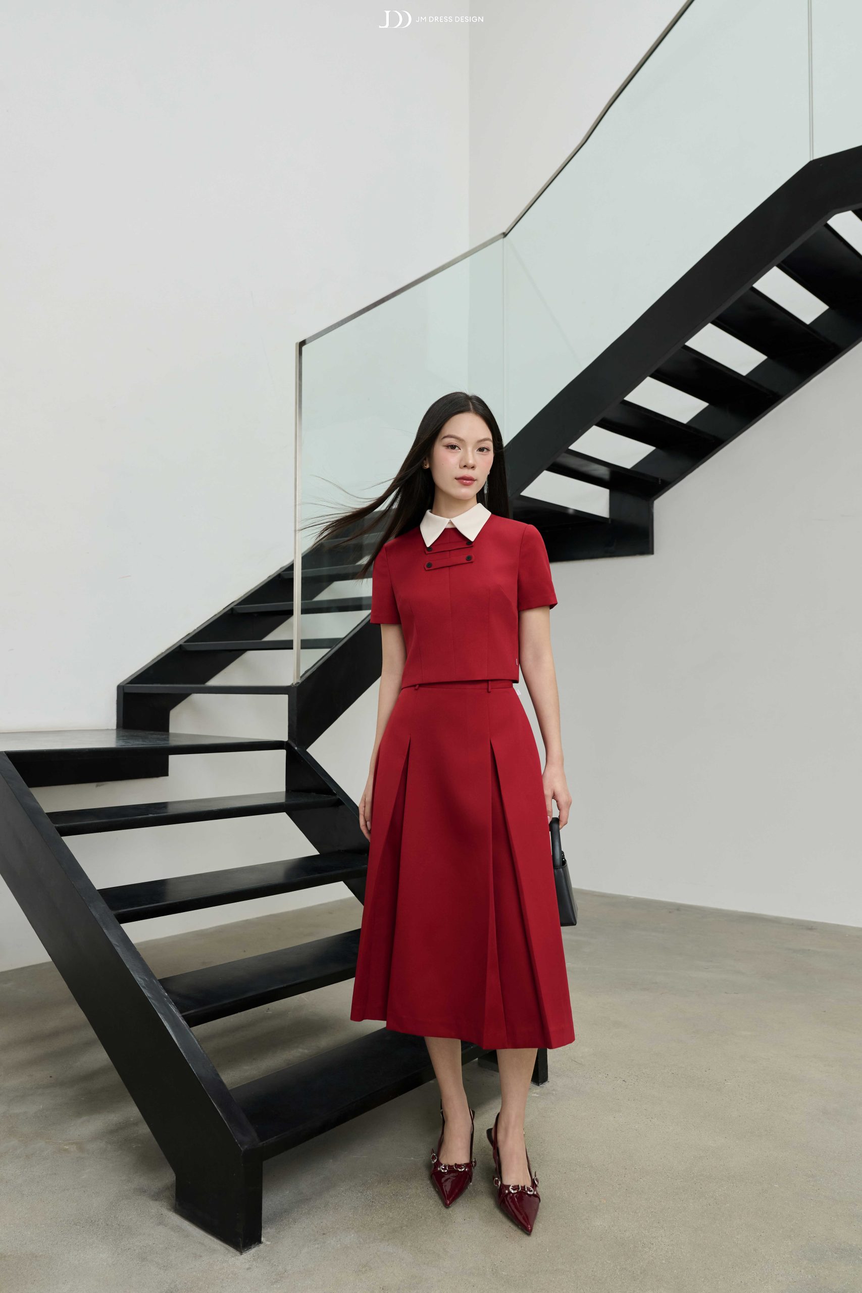 Áo kiểu crotop phối nơ cổ, hai túi ốp